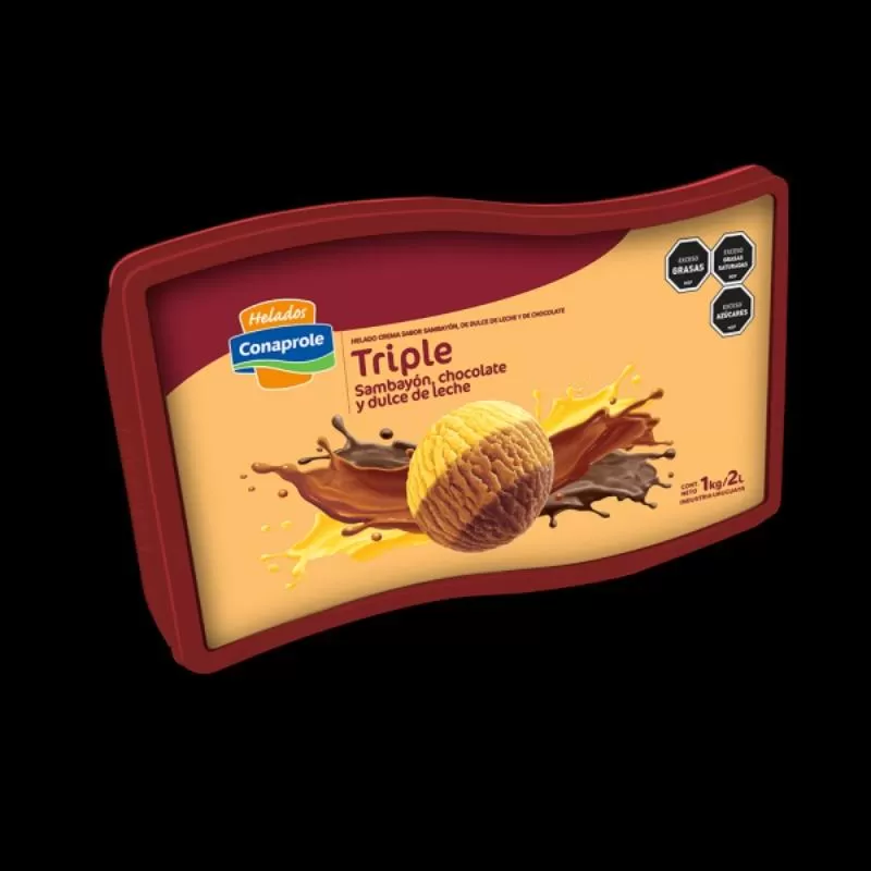 HELADO CRUFI TRIPLE SAMBAYON , DULCE DE LECHE y CHOCOLATE 1L